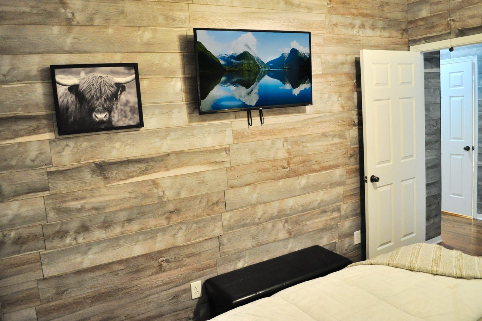 Ready to hit the hay? On the entry level, the primary bedroom offers a king-size bed plus a second bedroom with a queen-size bed. Downstairs, you’ll find the third and fourth bedrooms, each with a queen-size bed, plus the final fifth bedroom with 2 twin-over-twin bunk beds. Drift to dreamland after a hot shower and TV entertainment at the end of every day.