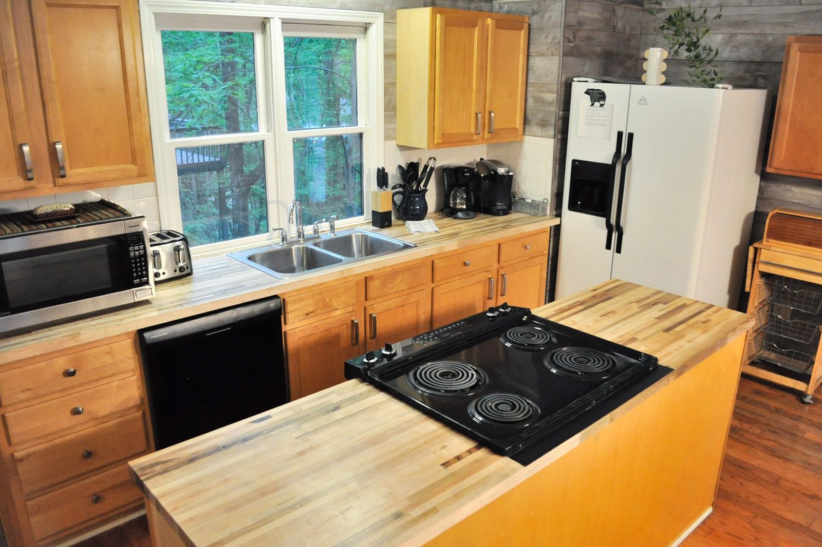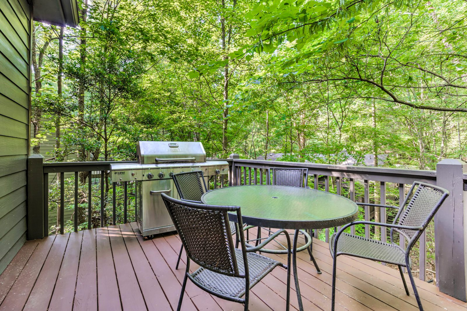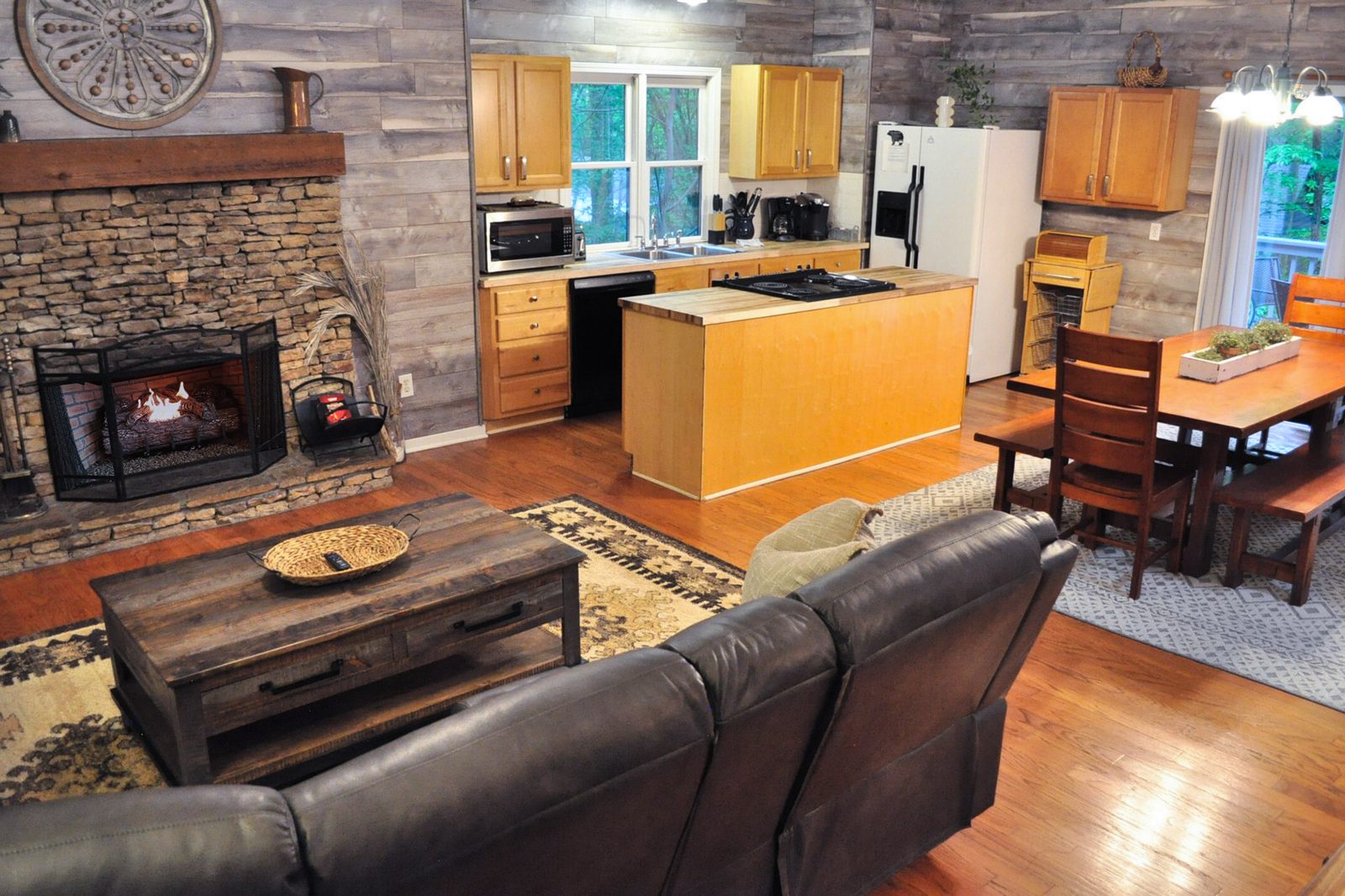 After a busy day kayaking, working out, hiking, grabbing a bite to eat, swimming at the pools, or sipping at the First Mountain Tasting Room, come back to this Big Canoe cabin rental to unwind. Whip up meals in the fully equipped kitchen, relax by the fireplace with your dog at your feet (it’s a pet-friendly cabin!), play games, or toss some burgers on the grill for lunch. The home also has Wi-Fi, a washer/dryer, rocking chairs, and air conditioning for guests’ convenience.