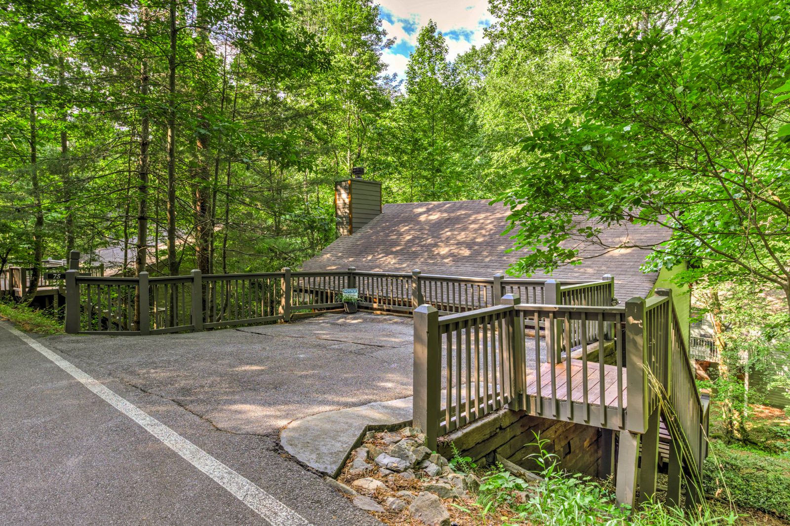 For travel convenience, this Big Canoe cabin rental features a flat and paved driveway with parking space for 2 vehicles. And the roads to the cabin are flat and paved as well, much easier than most mountain roads. Note you’ll need to take a staircase down to reach the property.